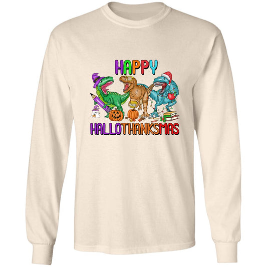 T-Rex Happy Hallothanksmas|T-Shirt LS