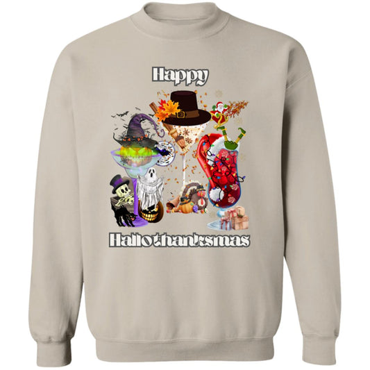 Happy Hallothanksmas Cocktails Dk Print| Pullover Sweatshirt